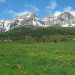 Un poco después de pasar el barranco de Gorgol, abandonamos la pista para adentrarnos por un bonito bosque de hayas cuyas hojas acaban de brotar y están de un verde casi fosforito. El sendero gana altura rápidamente hasta una bifurcación en el camino que nos envía al ibón de Piedrafita o hacia el propio pueblo. Nos vamos a este último atravesando unos claros en el bosque y sorteando algunos riachuelos hasta salir por encima del bosque a una zona de prados que queda justo por encima del pueblo de Piedrafita. El camino llega entonces a una pista asfaltada desde la que ya se ven abajo las casas de pueblo.
